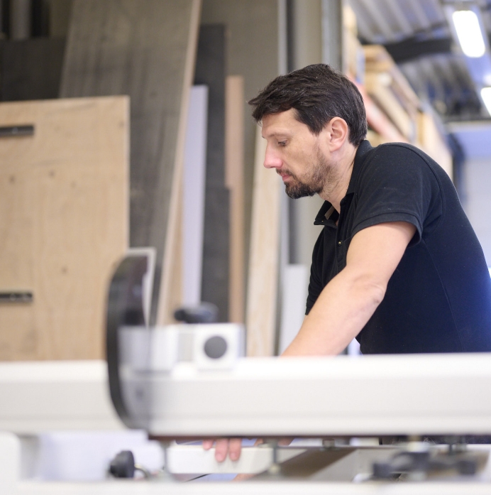 Andy Vlaemynck is een professionele, ervaren vakman met passie voor interieur en design. Met veel liefde ontwerpt en creëert hij maatwerk DAT volledig aansluit bij de wensen van zijn klanten. Van kasten, tafels en zitbanken tot de volledige inrichting van woon-, kantoor- of werkruimtes.